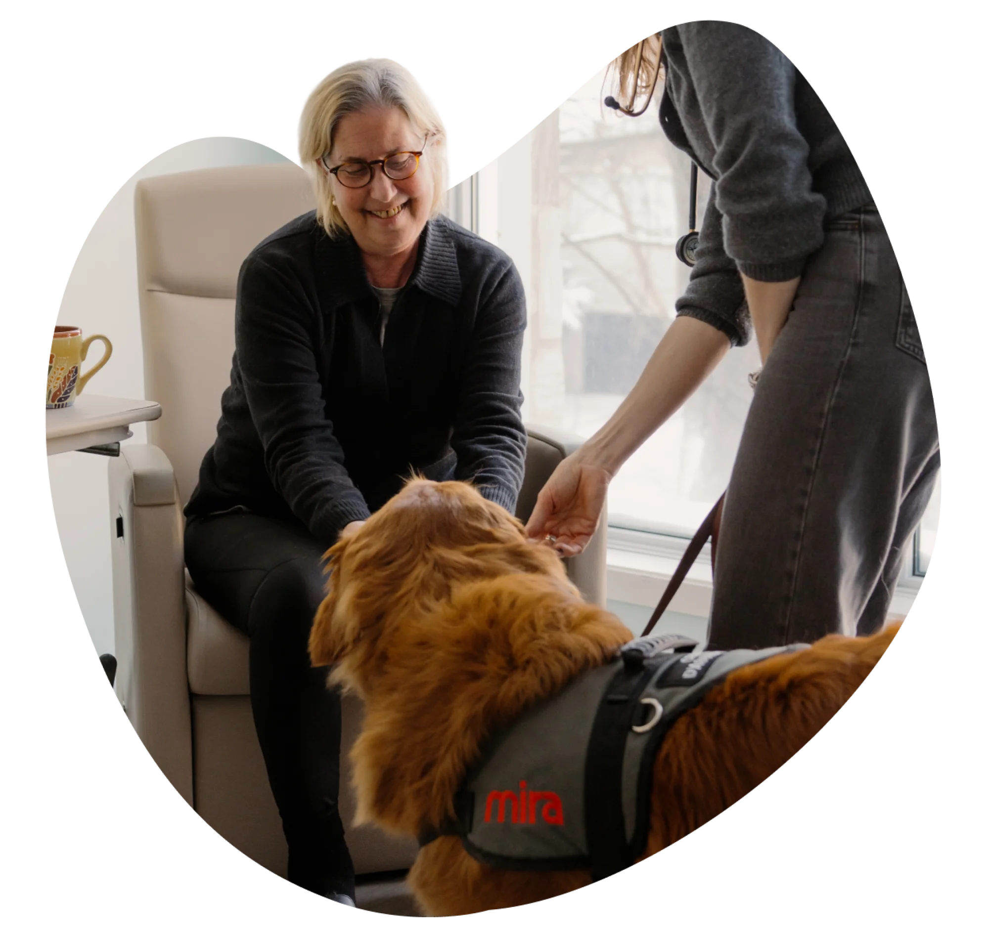À noter : Les chiens formés par Mira dans le cadre de ce programme sont des chiens destinés à appuyer des interventions spécialisées auprès de clientèles vulnérables et encadrés par la personne responsable du chien. Ils ne doivent pas être confondus avec des chiens de compassion, de zoothérapie ou de soutien émotionnel.